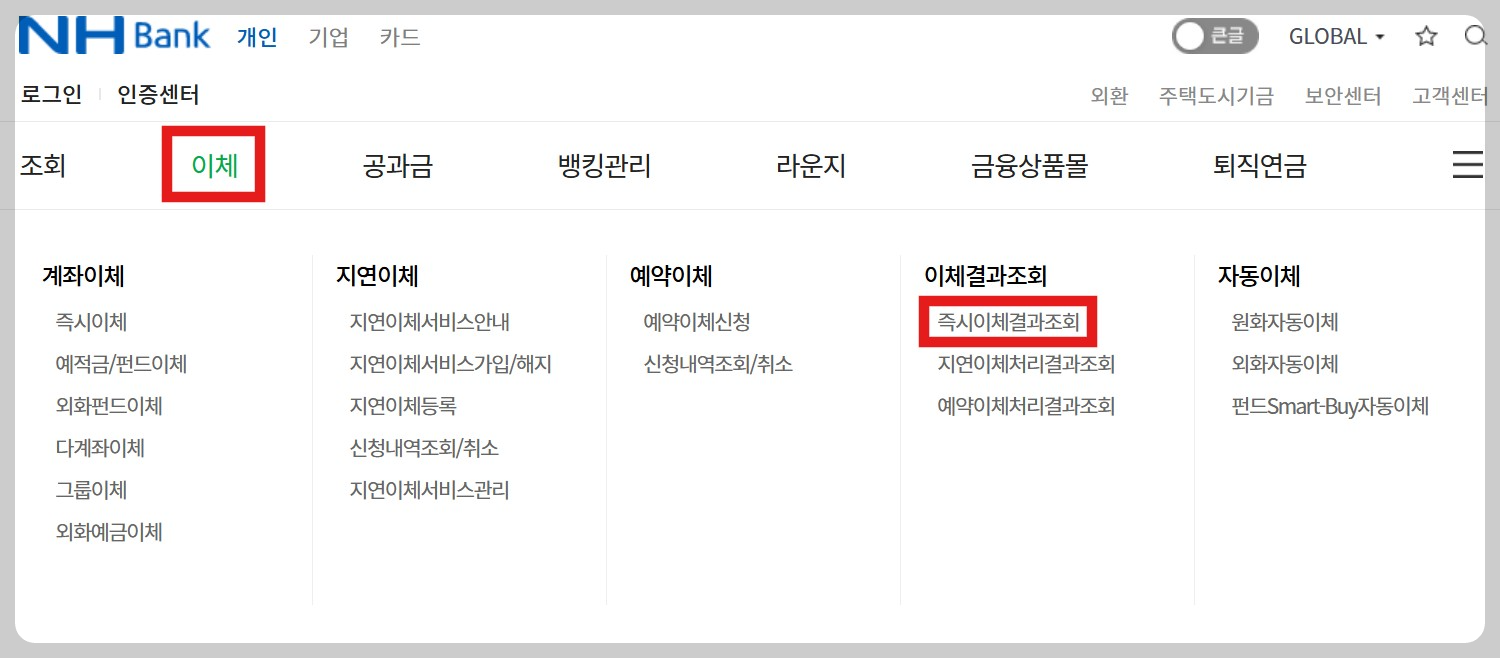 1. 농협 이체확인증 PC(홈페이지) 발급방법
