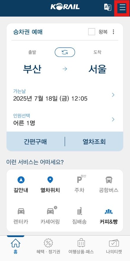 2. 모바일(코레일톡 앱)에서 발급하는 법