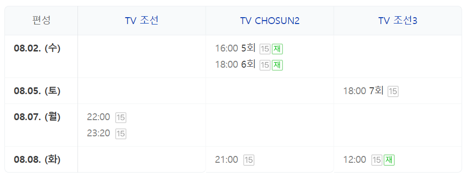 쇼퀸 5회 재방송은 TV조선2에서 08.02 (수) 오후 4시에 진행합니다.