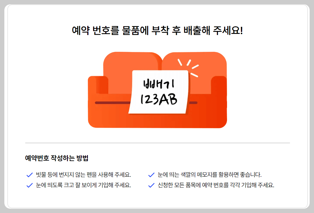 ④ 수수료 결제 후, 예약번호를 물품에 부착 후 배출하면 완료입니다.