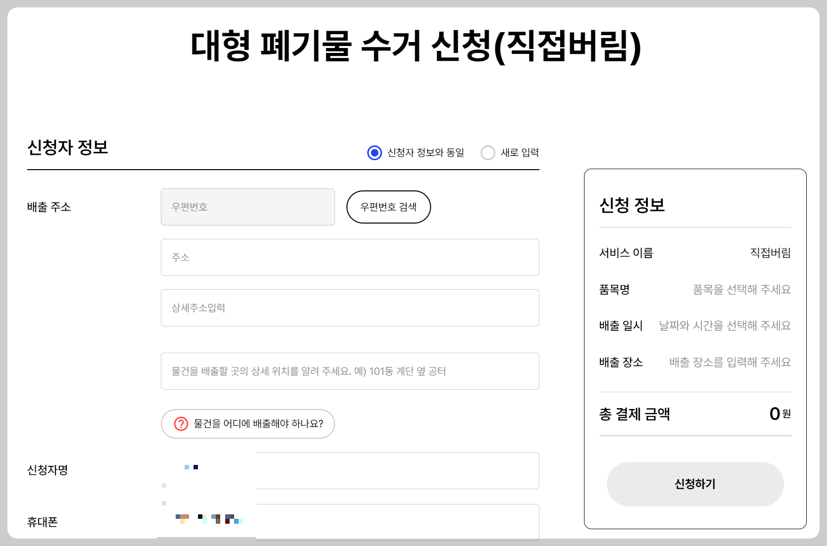 대형폐기물 인터넷신고 (지자체 수거)