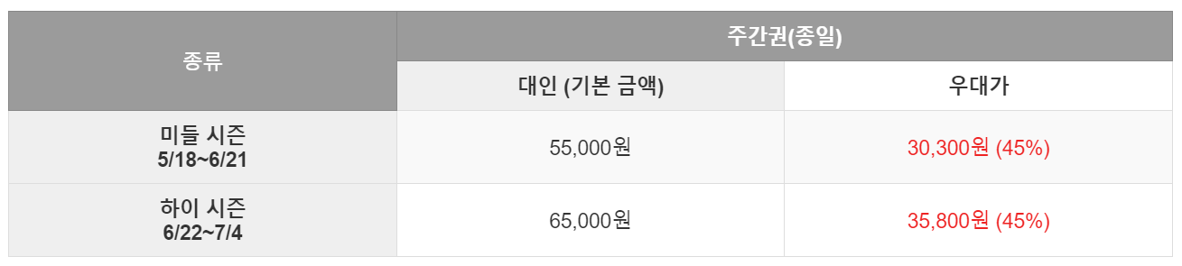 ③ 국민카드 소지자 45% 할인 (미들/하이 시즌)