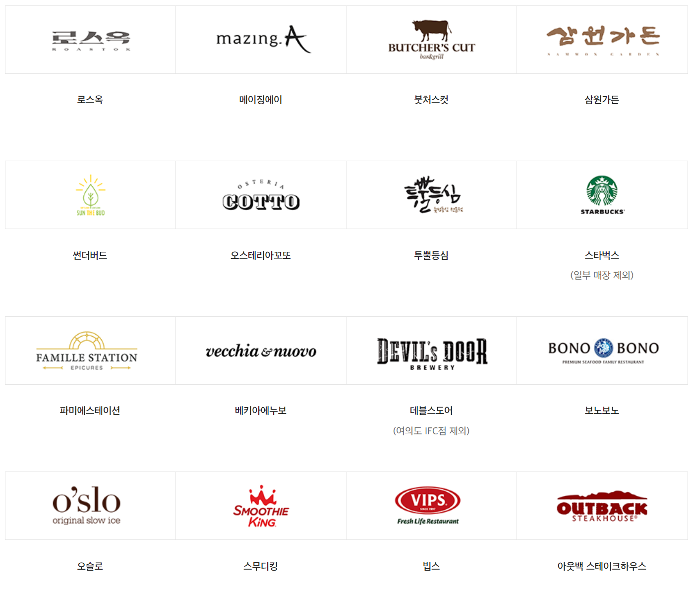 - 앰배서더 서울 풀만(연회장, 웰니스센터 및 멤버십 사용 제외)